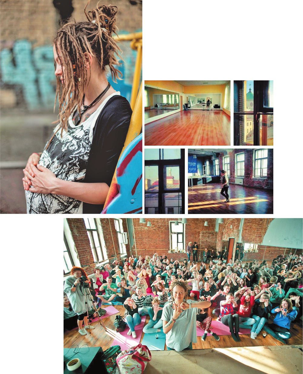 Когда я вернулась в Петербург и начала искать место для нашего room’a, я пришла к Роме Любомирову, диркетору школы танцев MadStyle, где я раньше преподавала йогу. Он показал мне замечательный кирпичный зал со сценой и огромными окнами с видом на купол церкви Святой Екатерины и сказал: «Ну, если никто не придет – можете не платить, а если придут люди – договоримся».