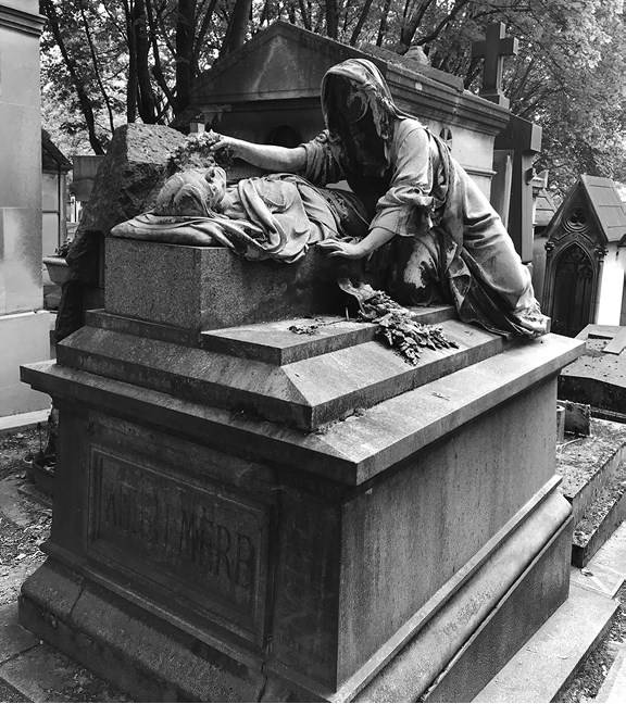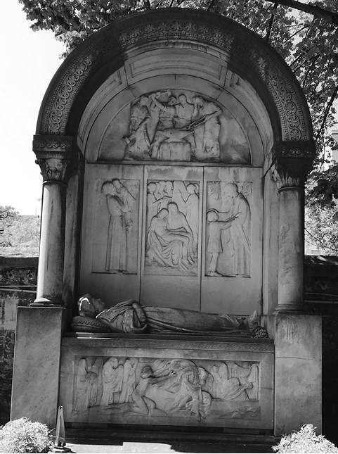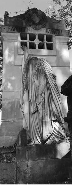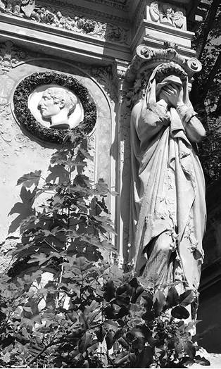 На семейном склепе ученого-химика и республиканца Франсуа-Венсана Распая, заключенного в тюрьму за участие в революции 1848 года, стоит женщина (ил. 22). Пока Распай был в заключении, его жена Генриетта Труссо (с. 1853) умерла, скульптура изображает ее в тот момент, когда она в отчаянии ухватилась за зарешеченное окно склепа, который напоминает тюрьму. Фигура полностью задрапированной женщины, символизирующей смерть, была изваяна тем же Антуаном Этекс[100]. Распай заказал ему памятник после возвращения из ссылки в 1862 году; сам он похоронен здесь же[101].