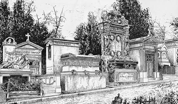 К середине XIX века Пер-Лашез стало самым престижным кладбищем в Париже; здесь можно было купить себе место среди известных людей, получив нечто вроде земного бессмертия. Это было и самое дорогое кладбище; участок для захоронения навечно[110] или же на определенный срок, подлежащий продлению, стоил очень больших денег[111]. Таким образом, ничем не примечательный человек за определенную сумму мог оказаться в пространстве, о котором помнят многие поколения и знают во всем мире.