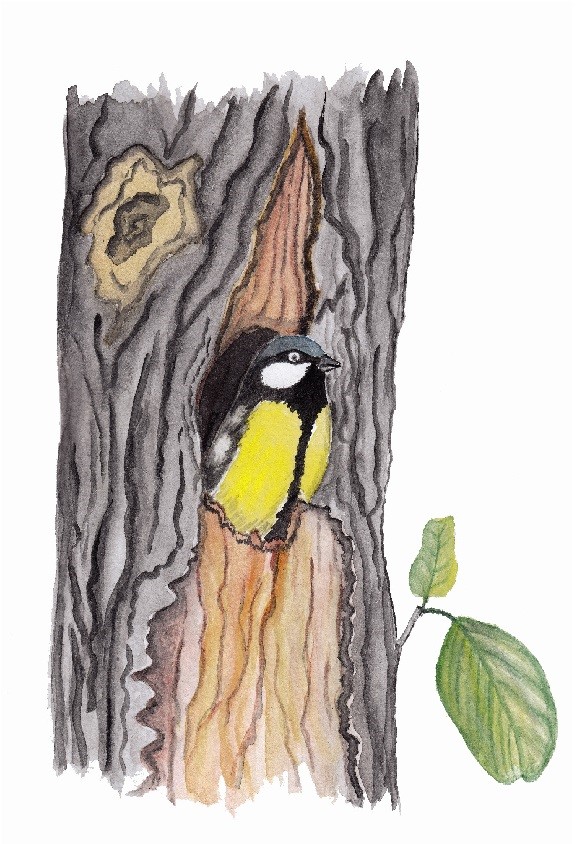 – Синица хоть и маленькая птичка, а смелая, мало кому в лесу уступит. Заглянет другая птичка в дупло, увидит синие и жёлтые пёрышки – значит, занято место. Не просто так синица в дупле живёт, а тоже дереву помогает: собирает насекомых–вредителей. Много их бывает: гусеницы, клопы, тля и прочие. Всех найдёт ловкая быстрая синица, всех выловит в трещинах на коре.
