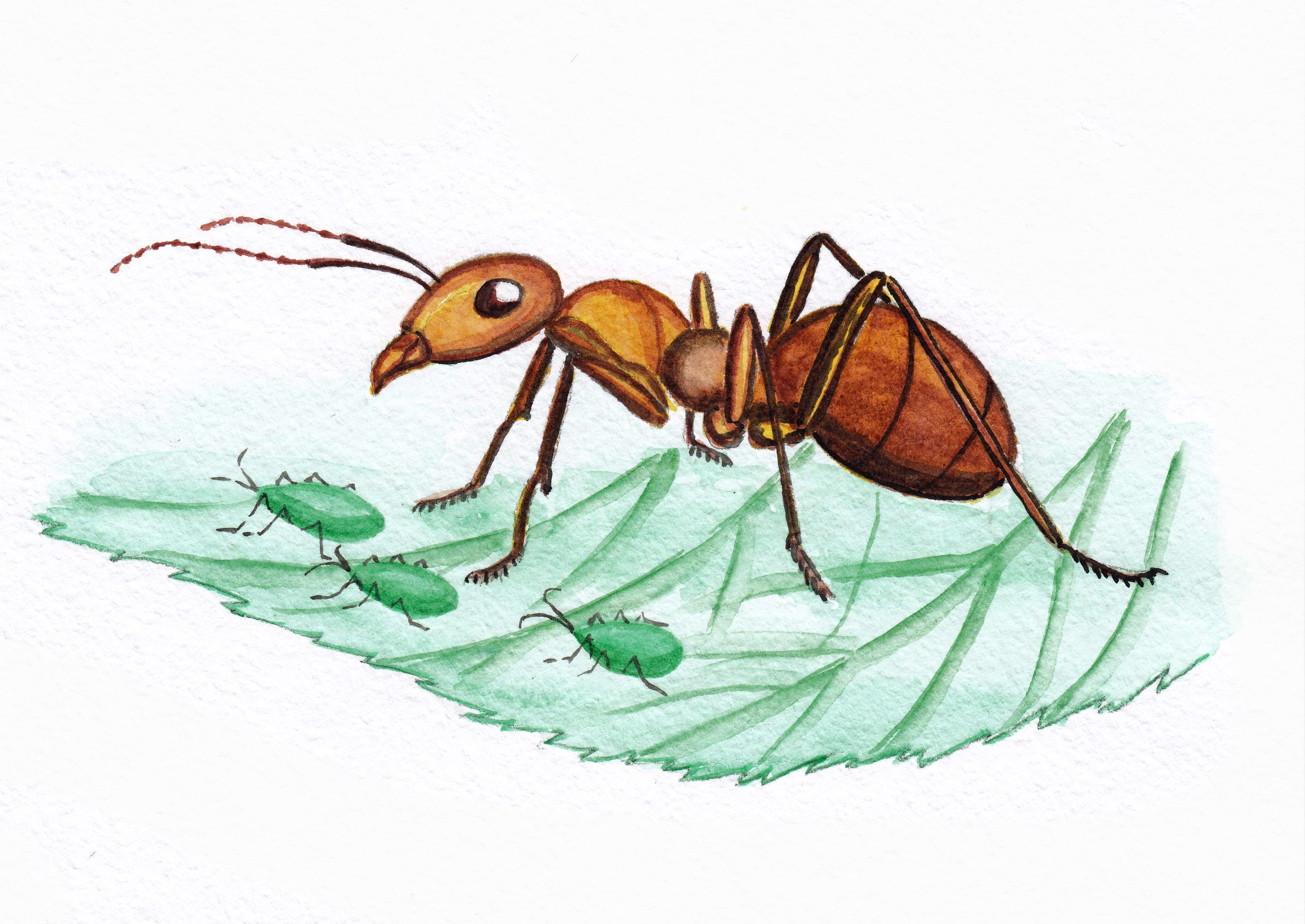 – Да, можно и так сказать. Но муравьи – не единственные насекомые, что приносят деревьям пользу. Очень многое в лесу зависит именно от насекомых. А некоторые виды муравьёв не так уж полезны: они разводят тлю. Это крошечные и очень вредные насекомые, которые пасутся целыми днями на молодых листьях разных растений, высасывая их соки.