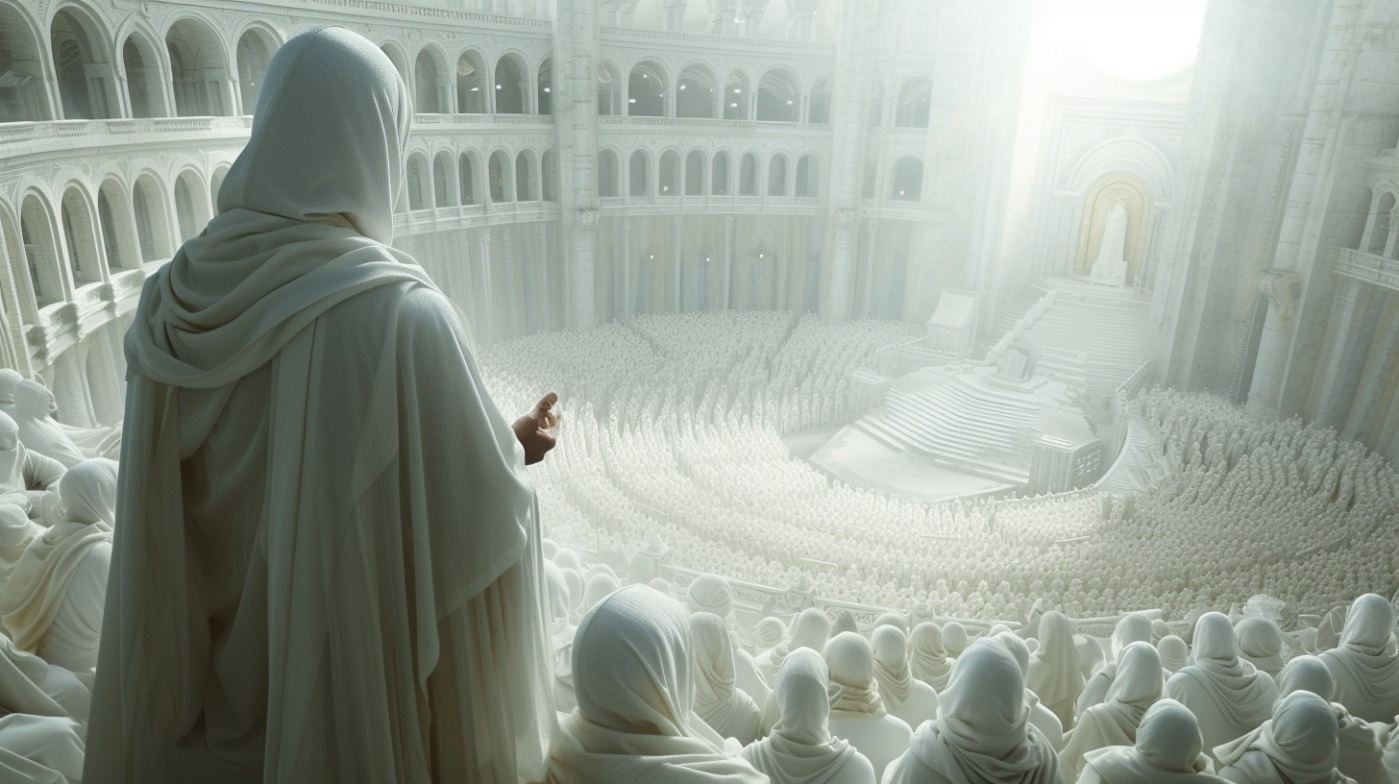 На площади собирались все кланы Великих четырех домов, кто-то называл их дворов, более древние жители города. Кланы различались по одежде – Торговцы – Белые с золотом, Жрецы – Белые в плащах и капюшонах, Воины – Белые гладкие и сетчатые, Мудрецы – Белые кружевные. Четыре Великих двора, Великих Белых дома, в каждом из них были еще разные подкасты, но все они были частью одного из четырех или примыкали к ним.