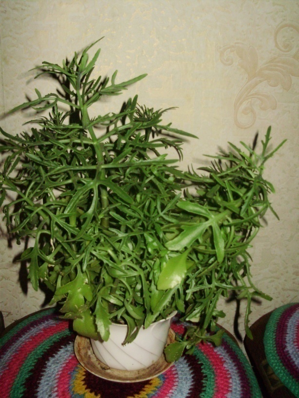 Листья зеленые мясистые, рассеченные. Листорасположение супротивное. Очень оригинальное и эффектное растение. Хорошо смотрится в групповых посадках. Выращивают только в виде куста. Имеет корневища, т. к. дает многочисленную поросль. Плохо растет на гидропонике.