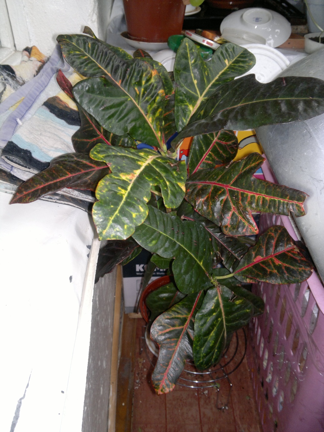 Кодиеум лучше растет, когда горшок слегка ему тесноват. Пересадка по мере необходимости. Когда корни оплетут весь земляной ком. Новый горшок должен быть больше предыдущего на 2-3 см., иначе растение не будет развиваться. Кодиеум прекрасно растет на восточном окне. Можно поставить его на южной стороне, но тогда нужно притенять от прямых солнечных лучей. В противном случае кодиеум может сгореть. Температура содержания зимой не менее 15 , а летом не более 27 градусов. Летом можно вынести на балкон. Полив обильный с вены до осени. Принцип полива, такой же как с цитрусовыми. Зимой ограниченный. Ком должен быть слегка влажным. Влажность воздуха высокая. Опрыскивать нужно каждый день. При t более 27 С, увеличьте влажность, поставьте растение в поддон с мокрой галькой. Раз в неделю листья нужно протирать мягкой тканью от пыли. Подкормки в сезон роста весной и летом 2 раза в месяц. При хорошем уходе растение может зацвести. Но в своей практике я этого не добилась. Кодиеум можно выращивать в виде куста или дерева. Очень эффектно будет смотреться такая посадка: под кодиеумом в виде дерева посадить кодиеум в виде куста.