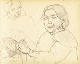 Марк Шагал. Сестра заплетает бант Марьясе. Лист из «Большого альбома». 1911–1912
