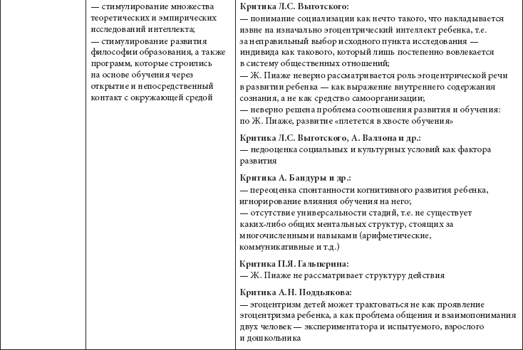Заключить этот параграф хотелось бы словами У. Крэйн [2002, с. 193]: «Буквально все пытаются противопоставить свои идеи взглядам Пиаже. Это уже само по себе свидетельствует о значимости теории Пиаже. И можно ручаться, что когда все страсти улягутся, теория Пиаже по-прежнему останется в силе. Ибо при всех ее слабостях она охватывает важнейшие аспекты когнитивного развития».