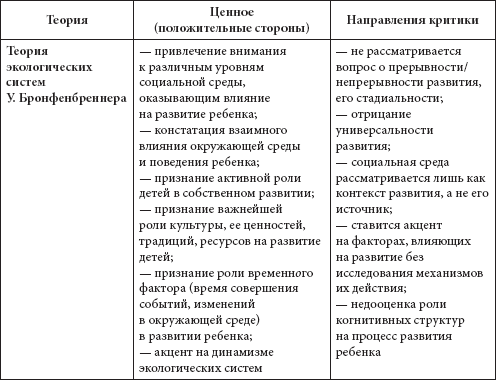 В табл. 2.6 представлена оценка теории экологических систем У. Бронфенбреннера.
