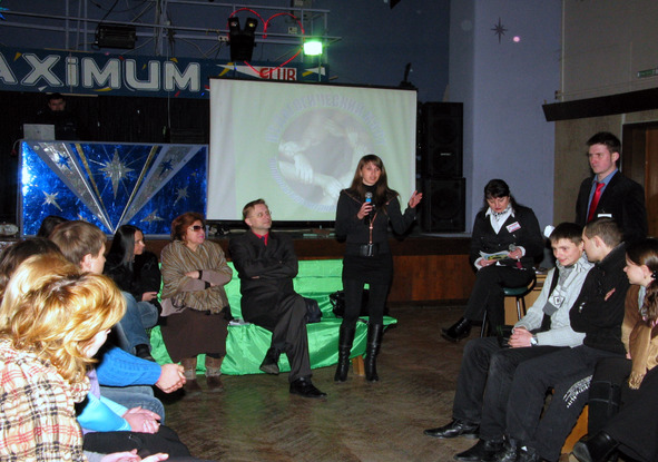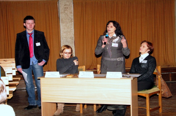 Сегодня у нас присутствует четыре группы собеседников: сектор «Подростки», сектор «Педагоги» и сектор «Родители», а также мы пригласили в этот зал экспертов по проблемам воспитания. Это: заместитель директора по основной деятельности Центра дополнительного образования детей и молодежи «Росквит» Мельник Наталья Васильевна, заведующая отделом социально-педагогической и психологической работы Чеботарева Елена Григорьевна, педагог-психолог Территориального Центра социального обслуживания населения Первомайского района г. Бобруйска Тарасенко Мария Александровна и социальный – педагог Центра дополнительного образования детей и молодежи «Росквит» г. Бобруйска Русакова Нина Михайловна.