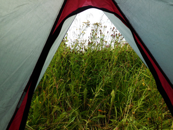 Ночью очень замёрзла. Надо будет попробовать накрыться дождевиком. Это всё из-за влажности, в зарослях травы же лежу.