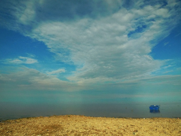 Берег озера почти везде размякший, покрыт зелёной чавкающей тиной и густо усыпан ракушками устриц. Там, где камешки – всё заполнено людьми. Деликатно протиснулась к воде – тёплой, прозрачной, голубой. Не залезть туда было выше всяких сил! Подъехала к камушкам. Обмоталась парео, подаренным накануне подругой. Поочерёдно сняла из-под него штанины – одну за другой – и тут услышала мужское: