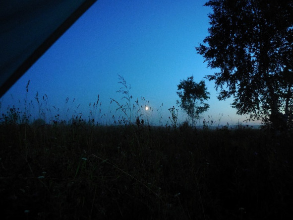 …Ночёвка в палатке хороша одним – невозможностью спать до обеда. От холода уже в восемь утра оказываешься на ногах, да и высыпаешься на свежем воздухе лучше и быстрее. Вот и сегодня я выспалась хорошо, только правая почка болит. С опухшей физиономией бодяжу подобие костра, чтобы вскипятить кружку оставшейся воды. Больше воды нет, поэтому надо собираться и ехать. Пью чай. Собираю палатку. Пакую вещи в велорюкзак. Привет, утро!