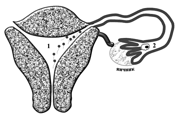 После прохождения этого уровня сперматозоиды оказываются в матке, среда которой благоприятна для них (рис. 3, б). Подвижность сперматозоидов значительно возрастает. Для успешного оплодотворения в матку должно проникнуть не менее 10 млн сперматозоидов.