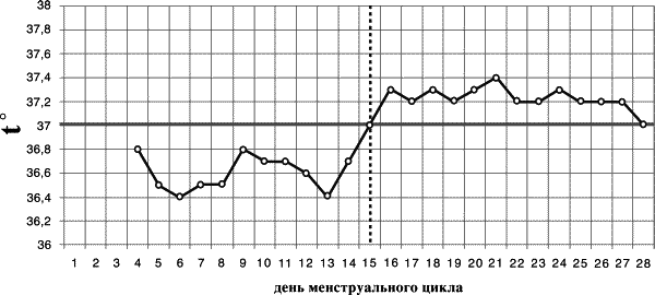 В норме БТ имеет две фазы (рис. 5). В первой половине цикла она ниже 37,0 °C, а во второй половине – выше этого уровня: