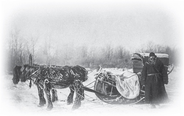 Кузьма начал неторопливо объезжать снежный завал. Заспанный Прохор соскочил с тарантаса, держа в руке ружье.