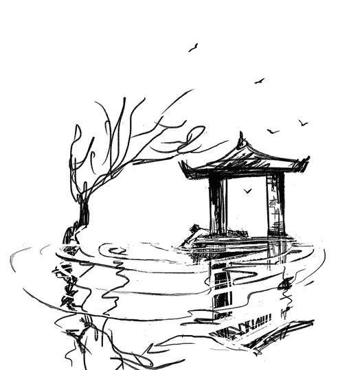 На крыльце, где лежали вымокшие бродни сторожа, он огляделся и заметил у забора колышущуюся на воде – точно как злополучная нота – беседку-пагоду.