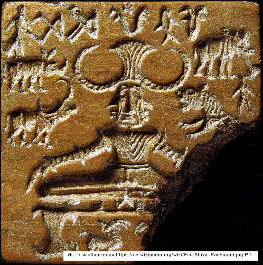 Один из артефактов, найденных на раскопках Хараппской цивилизации, на котором предположительно изображен прото-Шива в форме Пашупати.