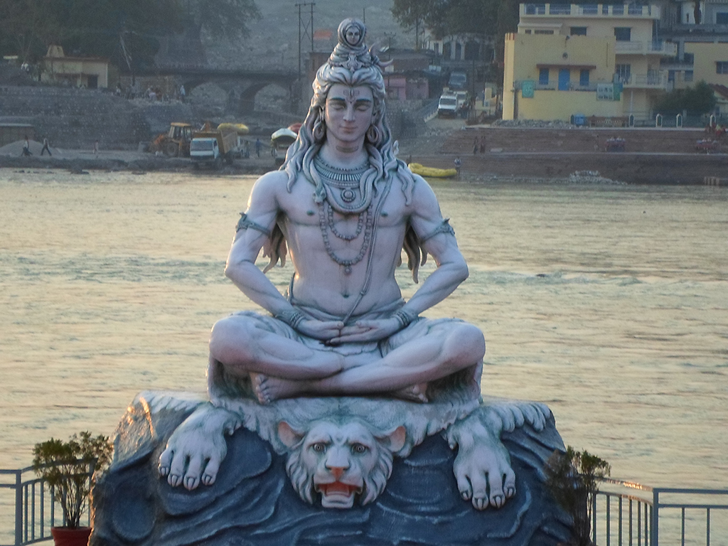 Статуя бога Шивы в образе погруженного в медитацию йогина, с третьим глазом на лбу, полумесяцем в волосах, украшениями из змей и зерен рудракши и Гангой на голове. Фото автора.