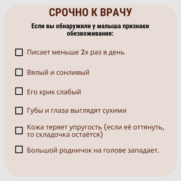 Нужно срочно обратиться за помощью к врачу, если вы обнаружили у малыша признаки обезвоживания.