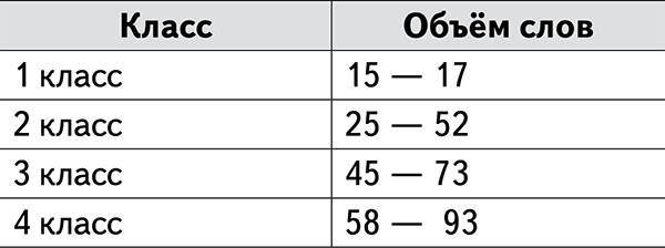 Количество слов в диктантах зависит от возраста учащихся. Это необходимо учитывать!
