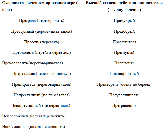 Преследовать, знаки препинания, камень преткновения, престол, препятствия, преклонный, престарелый, препозиция (= предлогу ПРЕД).