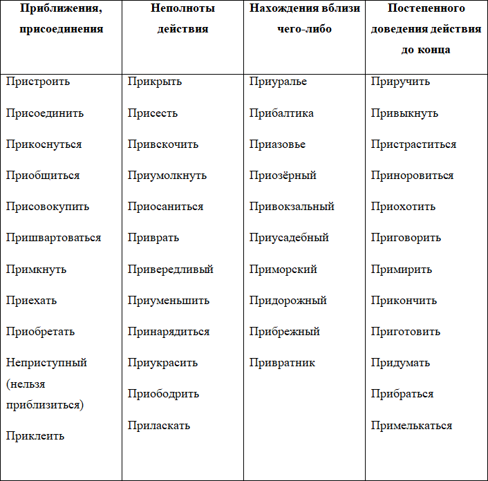 Привольный, притворный, притолока, причудливый, приличный, приданое, природа, придворный, привходящий (=предлогу ПРИ).