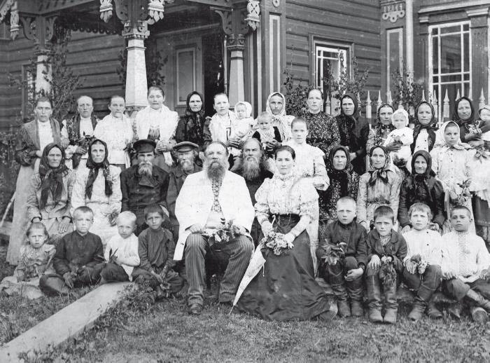 Зажиточные крестьяне России. Мартьян Сазонов с супругой Елизаветой Алексеевной и жителями села Асташово. 1908 год
