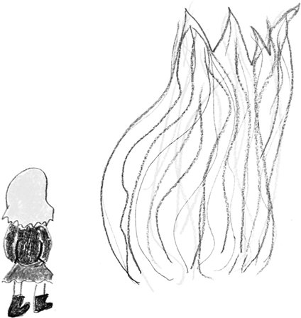 Стоит Аленка, смотрит на огонь вокруг себя и думает, как же его теперь поменьше сделать? Тут, видно, бабушка решила посмотреть, чем же там ребенок занят, что-то притих. Вошла в чулан, схватила первое попавшееся полотенце с вешалки на стене, и давай все вокруг им тушить. Потушила.