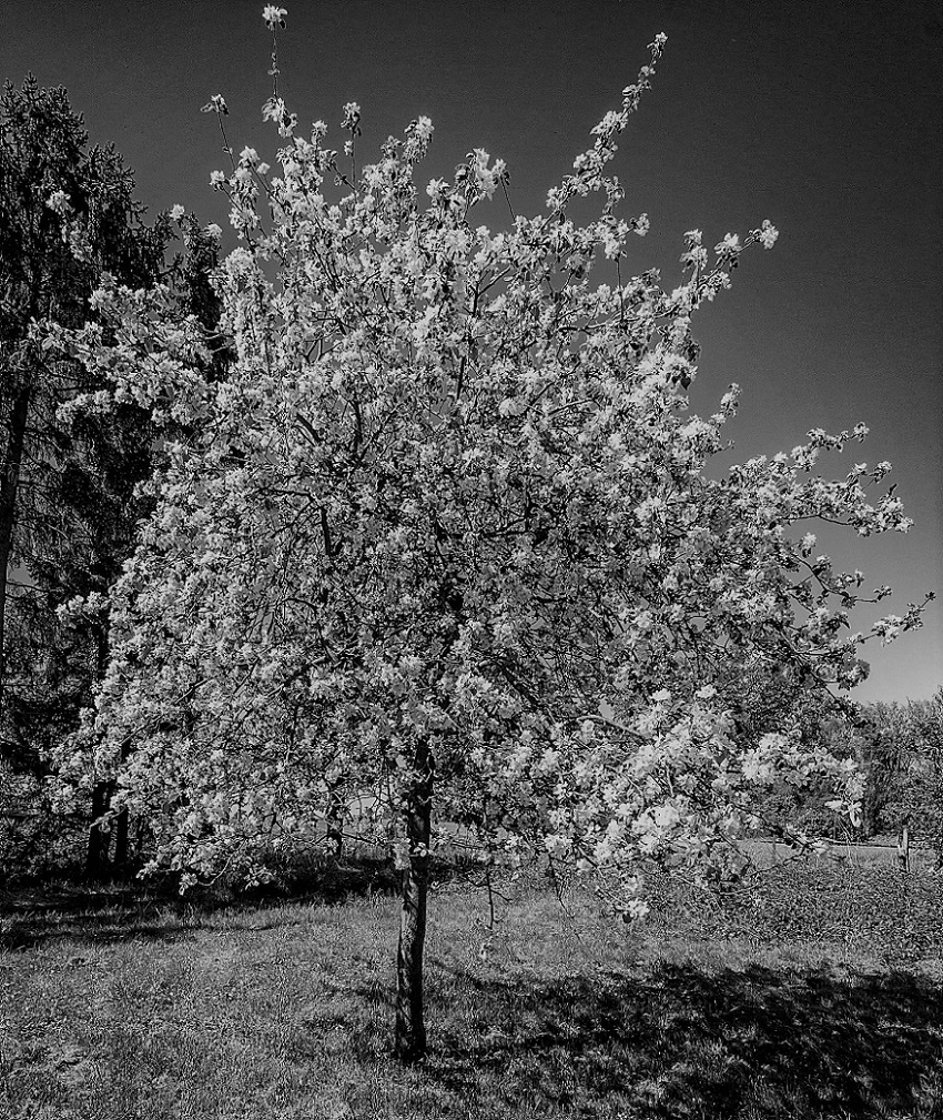 Однажды летом, гуляя с Зоей по городу, бабушка указала внучке на невысокое дерево. Это была маленькая яблонька. Она стояла на окраине пустыря и украшала его, как бы украсил зеленую равнину яркий одинокий цветок. Миниатюрное деревце было усыпано белоснежными цветами, и девочка невольно залюбовалась прекрасным видом.