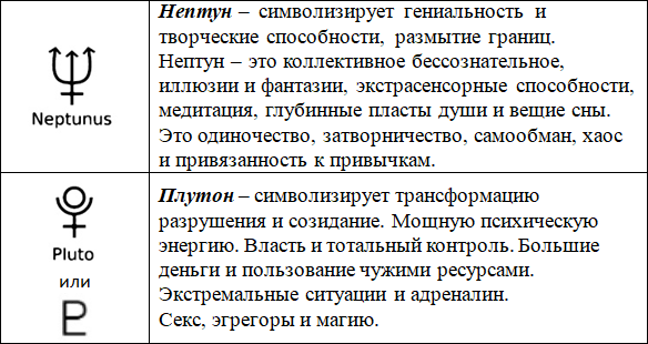 Планеты, которые находятся за Сатурном, называют Высшими планетами. Эти планеты открыты не так давно. В 18-м веке была открыта планета Уран, которая отвечает за революцию и новаторство. После Урана был открыт Нептун, отвечающий за коллективное сознание, творческий и глубинный душевный потенциал человека, и Плутон, который отвечает за трансформацию, силу и власть. Эти планеты называются высшими планетами и описывают характеристики целого поколения людей, и влияют на все общество. Они описывают социальные явления, как, например, развал Советского Союза, или мировые войны, а также крах финансовых систем и их возрождение. Это медленные планеты, так как медленно движутся по орбите, поэтому и названы планетами поколений, и в каждом поколении людей можно отследить одну и ту же вибрацию.