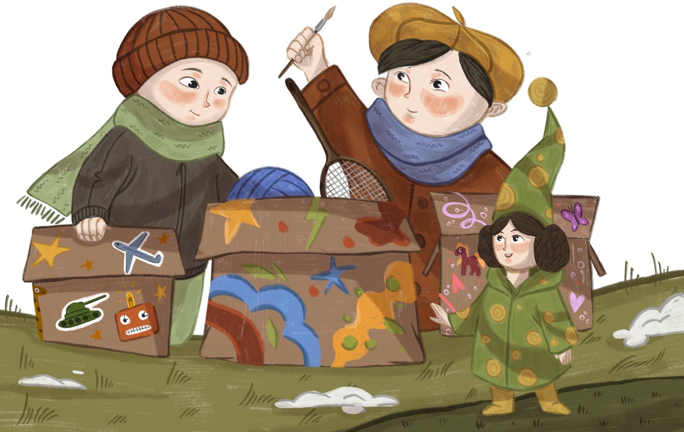– Чуня, неси три коробки и карандаши, – скомандовала Эма, а Чуня побежал домой.