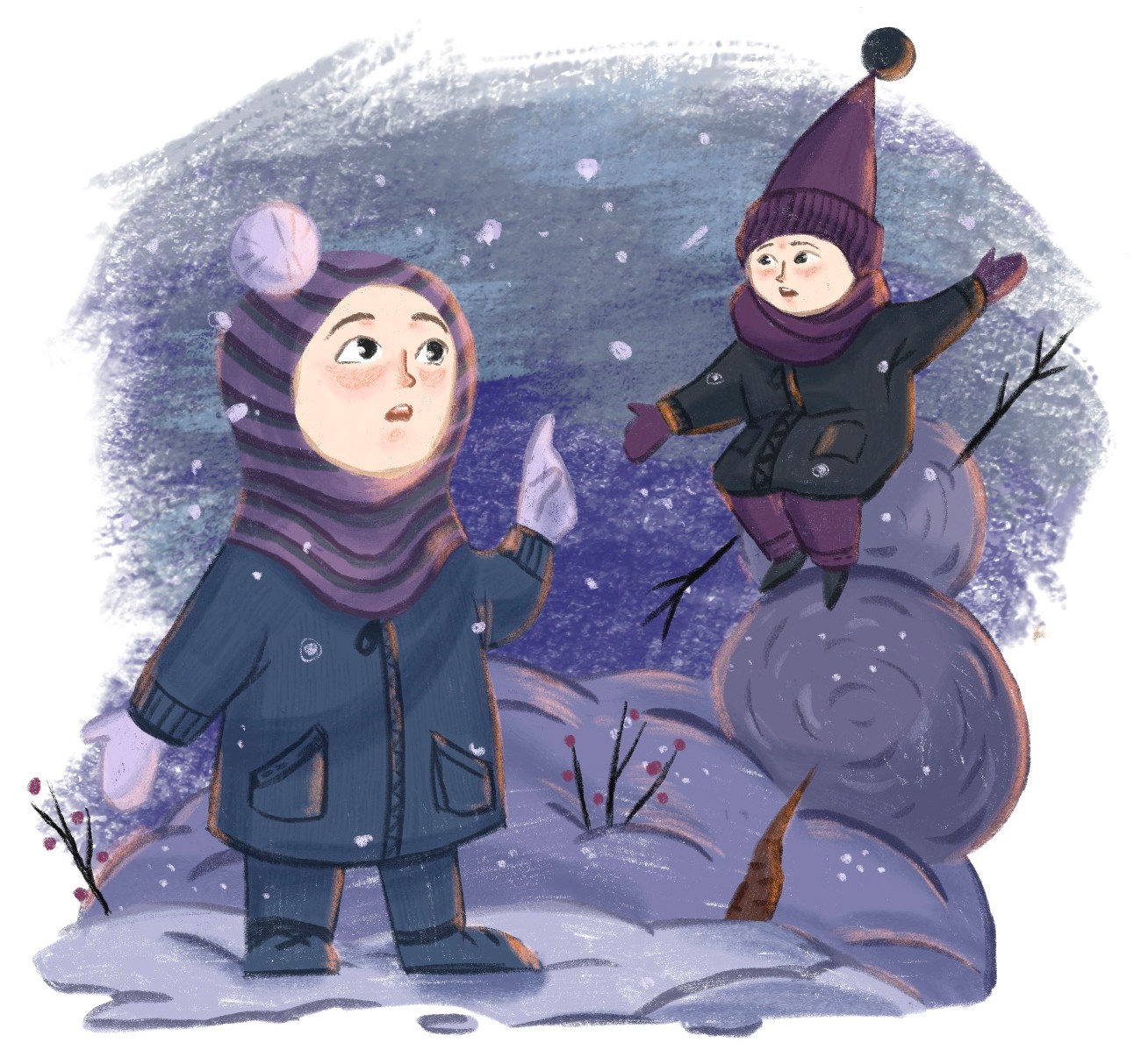 – Нет, это я первая! Посмотри, он у тебя даже ещё не украшен. Где нос? Где глазки? И вообще, он у тебя смотри какой маленький! – отвечала ему девочка.