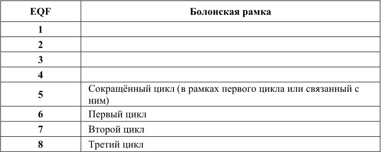 Рамка квалификаций ЕПВО фиксирует [126]: