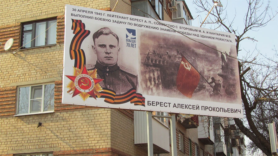 Исторический факт: 30 апреля 1945 года младший лейтенант Алексей Берест возглавил выполнение боевой задачи по водружению знамени Победы на куполе здания Рейхстага. Его водрузили Алексей Берест, Михаил Егоров и Мелитон Кантария в сопровождении группы автоматчиков. Егорову и Кантарии за этот подвиг присвоили звание Героя Советского Союза. Алексей Берест тоже был представлен к награждению Золотой Звездой Героя Советского Союза, но почему-то этого звания не получил, а был награждён только Орденом Красного Знамени. По одной из версий, маршал Жуков не любил замполитов и вычеркнул его из списка собственной рукой.