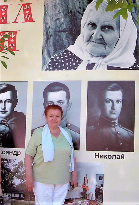– А вы в курсе, что в Ростовской области до сих пор живёт десятый сын нашей бабушки? Да-да. Зовут его Владимир Александрович Лебеденко. Вышло так. В 1966 году Владимир служил в армии в Тбилиси. Прочитал в газете о матери, потерявшей девятерых сыновей, и расстроился. Всё думал о том, каково ей сейчас. Сел писать ей письмо. Завязалась переписка. Солдат просил разрешения называть её своей матерью. Бабушка дала согласие, а через несколько месяцев пригласила его на свой юбилей. В часть пришла телеграмма, где названого сына просили приехать на девяностолетие матери. Она вызвала настоящий переполох.