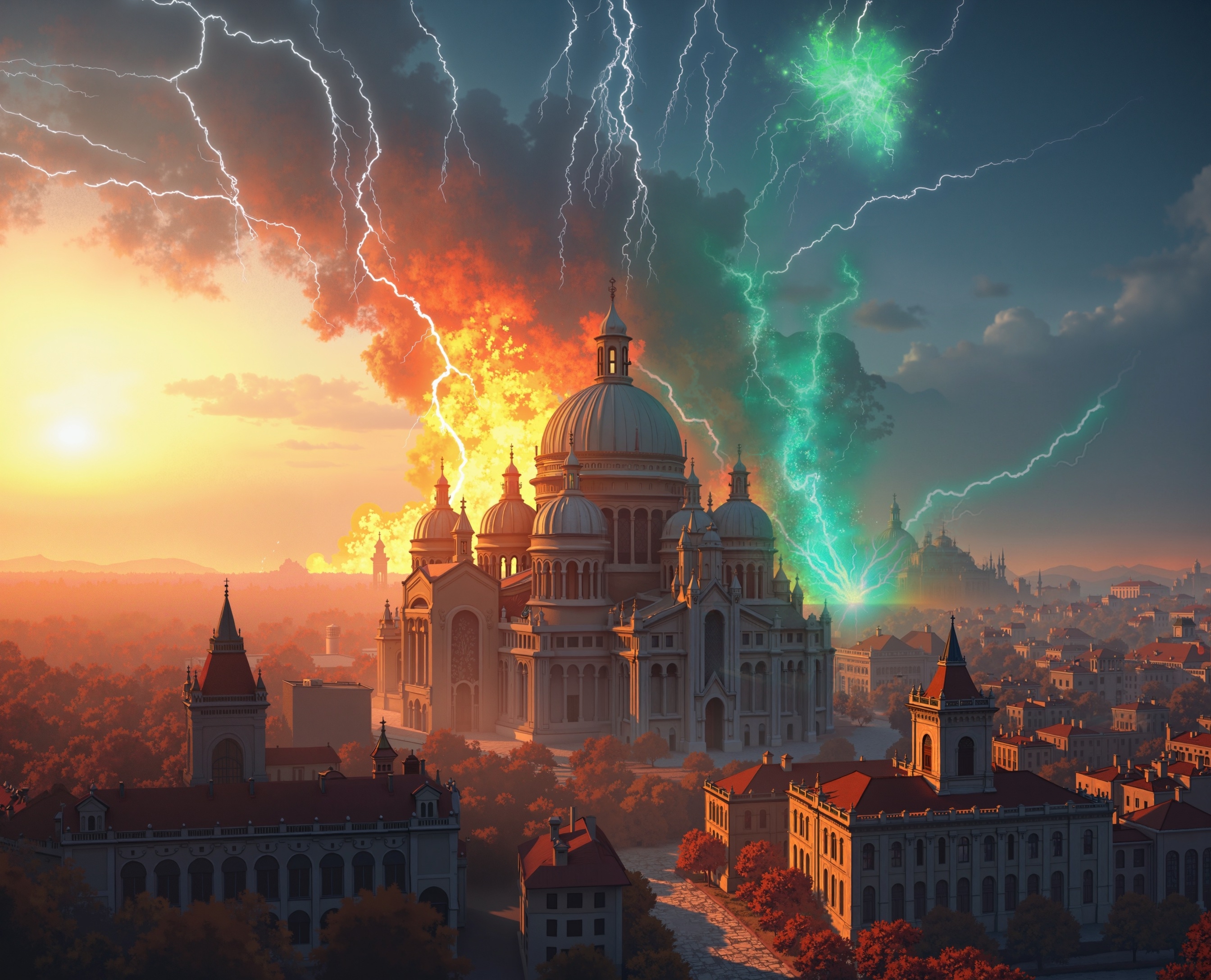 Проблемы начались примерно три минуты спустя. В районе приюта вспыхнул огромный шар болотно-зелёной магии, а восемь секунд спустя нас догнал звук взрыва, выбивший стёкла в незачарованных окнах небогатых домов. Мы, прижавшись к стене, стали двигаться чуть медленнее, избегая несущихся во все стороны граждан.