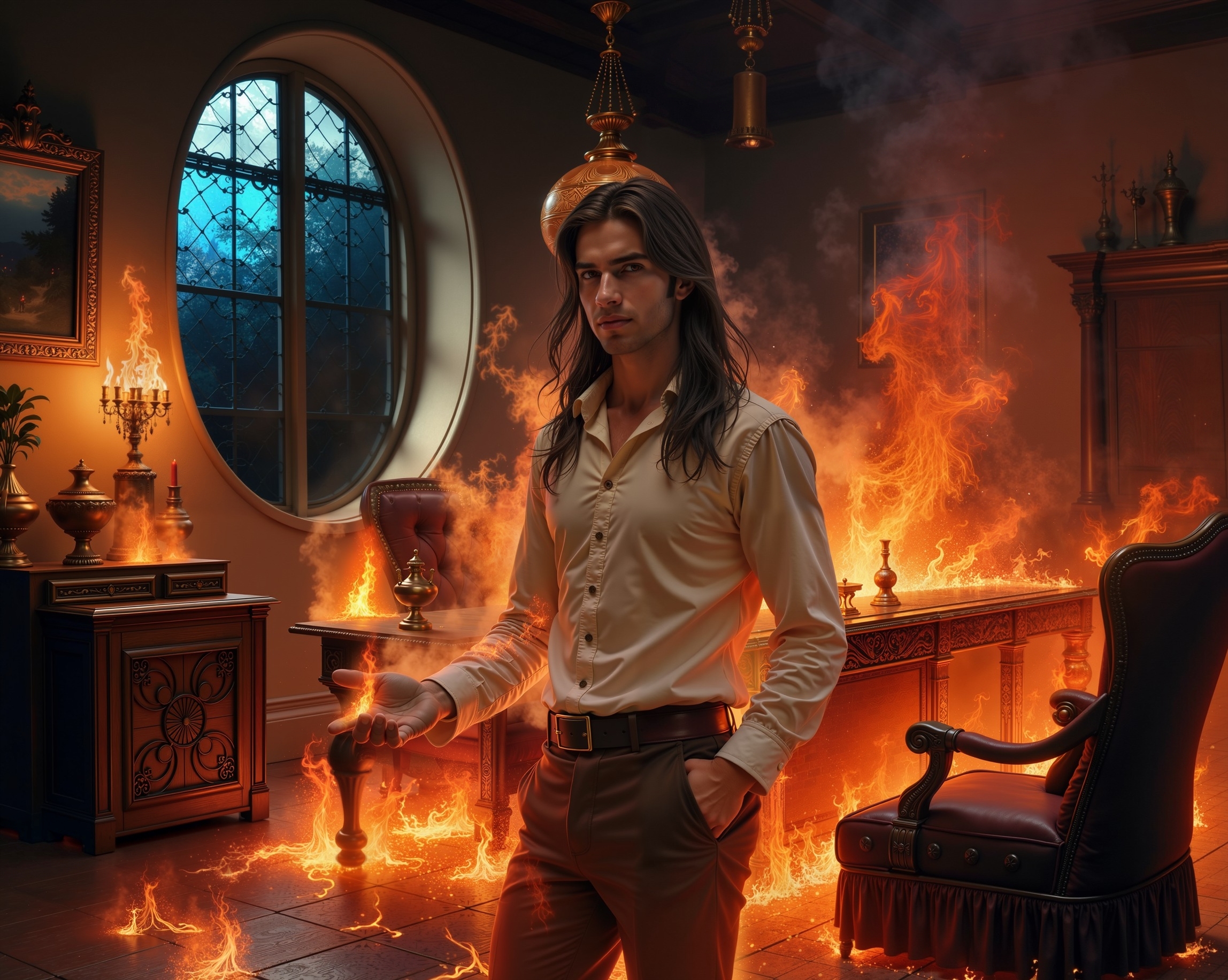 Да, его огненный образ поражал! Волосы становились почти чистым пламенем, от кожи исходил обжигающий жар, и она то и дело загоралась. Если не сдерживать огонь, то Аскер целиком погружался в пламя. Незабываемое зрелище!