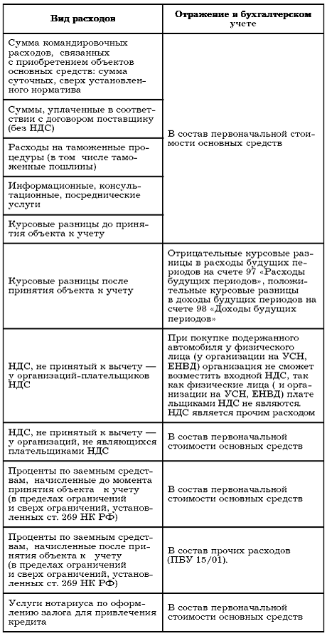 В бухгалтерском учете первоначальную стоимость основного средства определяют в соответствии с ПБУ 6/01, суммируют все фактические затраты организации на приобретение автомобиля, за исключением НДС.