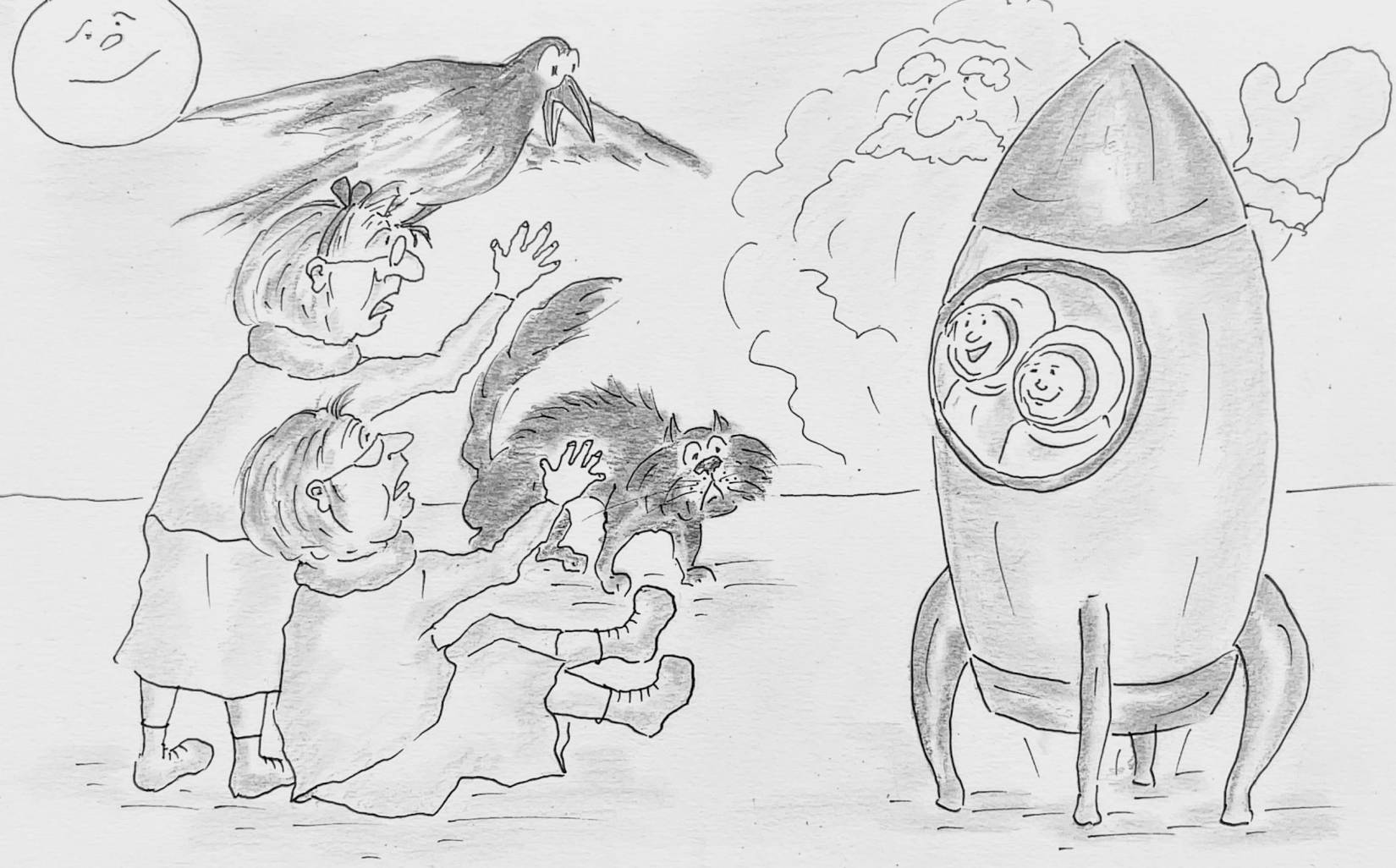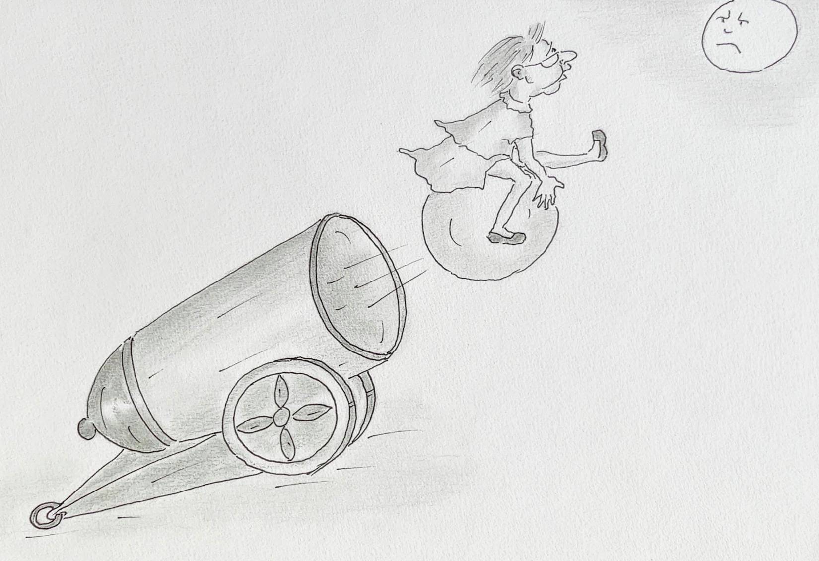 – Какой ужас!! – закричали Дети. – Нет, мы не хотим на Луну из пушки!