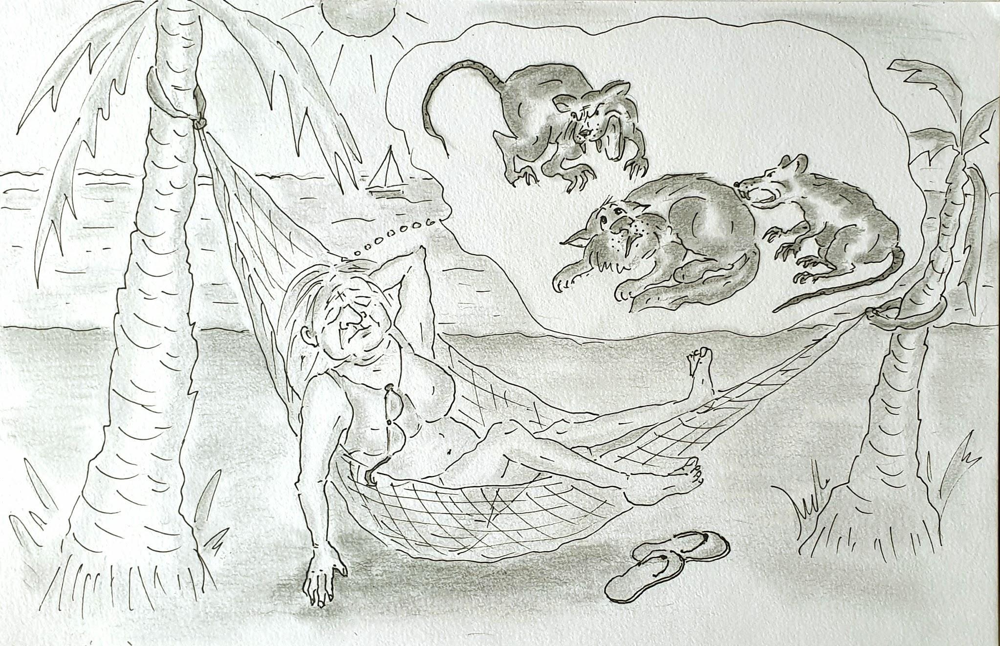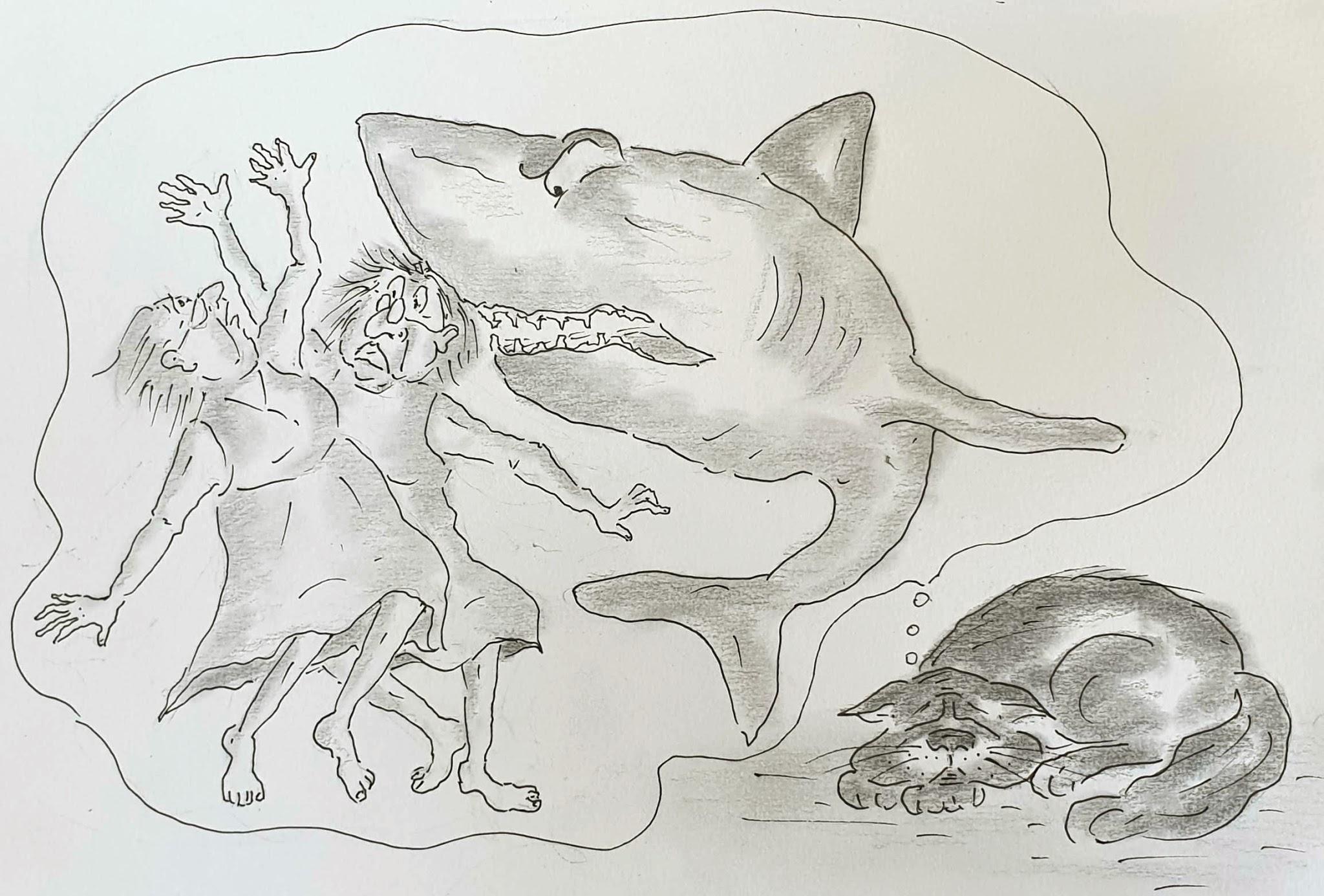 Муся была вся на нервах. Ей снилось, что Бабу Гусю и Тётю Машу проглотила огромная зубастая акула. Муся совсем не хотела потерять Бабу Гусю и Тётю Машу, и от волнения вздрагивала и стонала во сне.