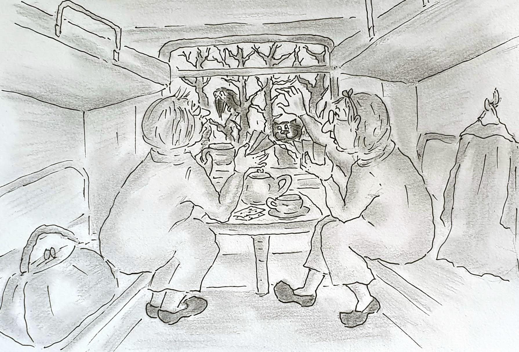 В купе было тепло и уютно. Баба Гуся и Тётя Маша успокоились, пили чай чай, болтали и играли в карты.