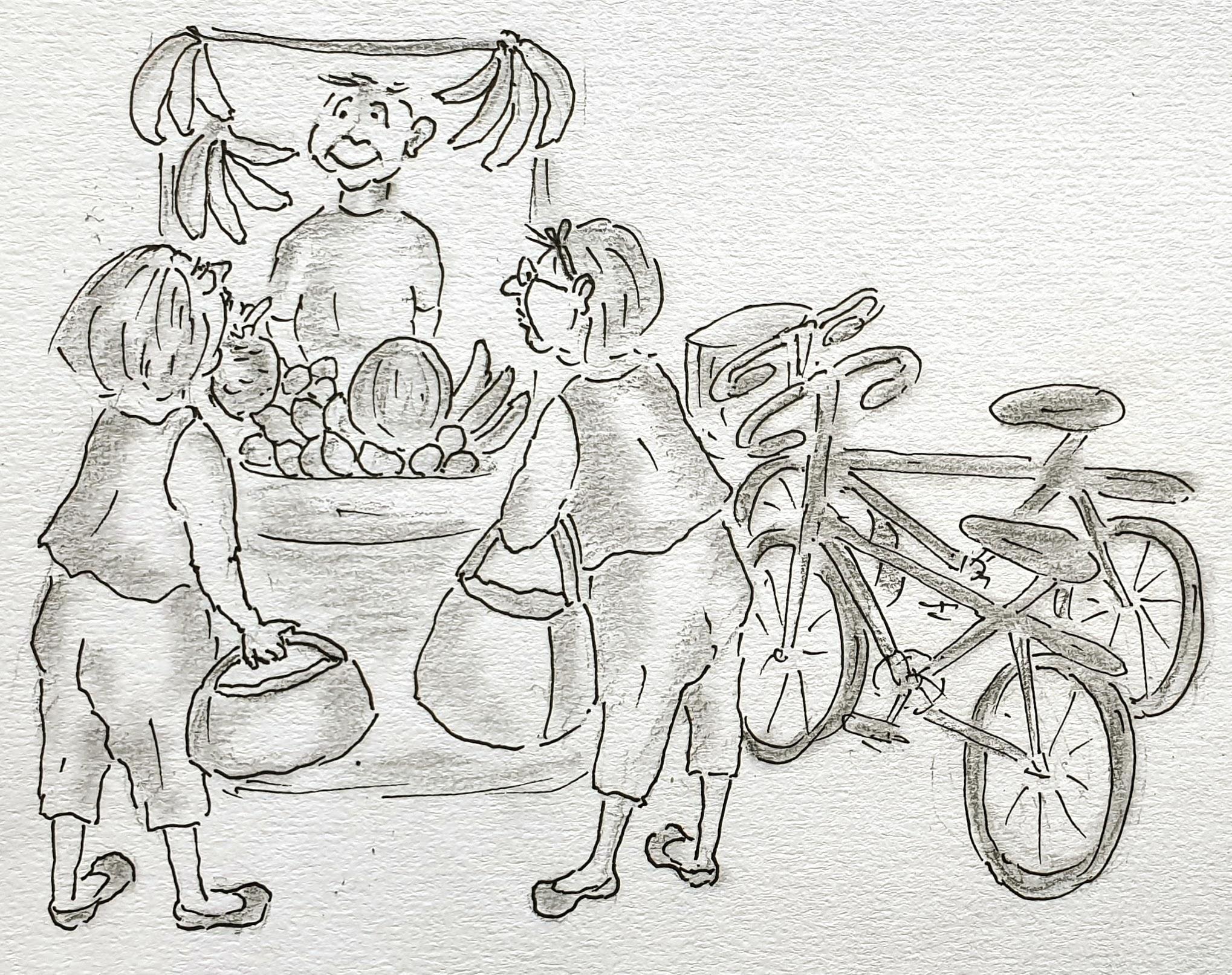Любите ли вы фрукты? Глупый вопрос… Знаю, что Муся предпочитает рыбу, а Ворона – кашу и макароны. А вот мы с Тетей Машей обожаем фрукты! Недалеко от нашего замечательного домика есть маленькая овощная лавочка. Туда можно дойти пешком, а можно доехать на велосипеде.