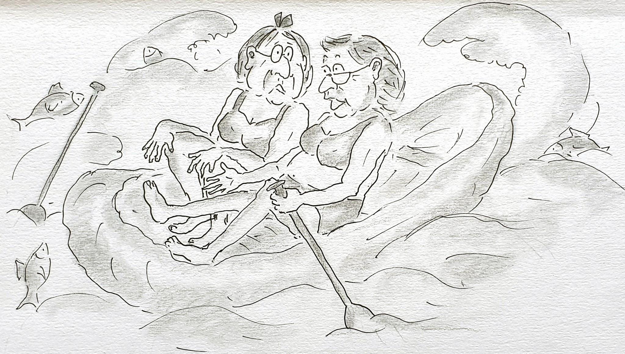 Сегодня мы с Машей плавали на надувной лодке. Маша сначала нервничала и говорила: