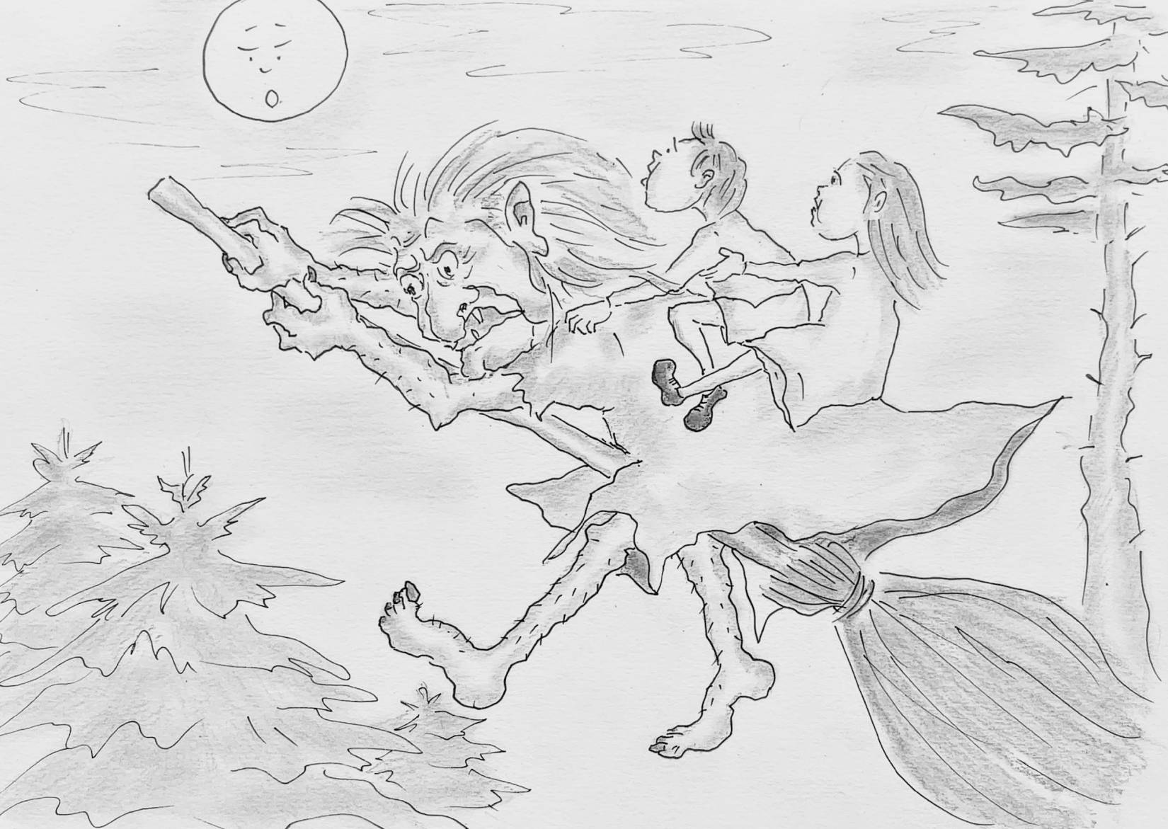 – Зато мой самый любимый способ, – сказала Баба Гуся, – путешествие на Луну на метле, верхом на Бабе Яге!! Вам бы понравилось!