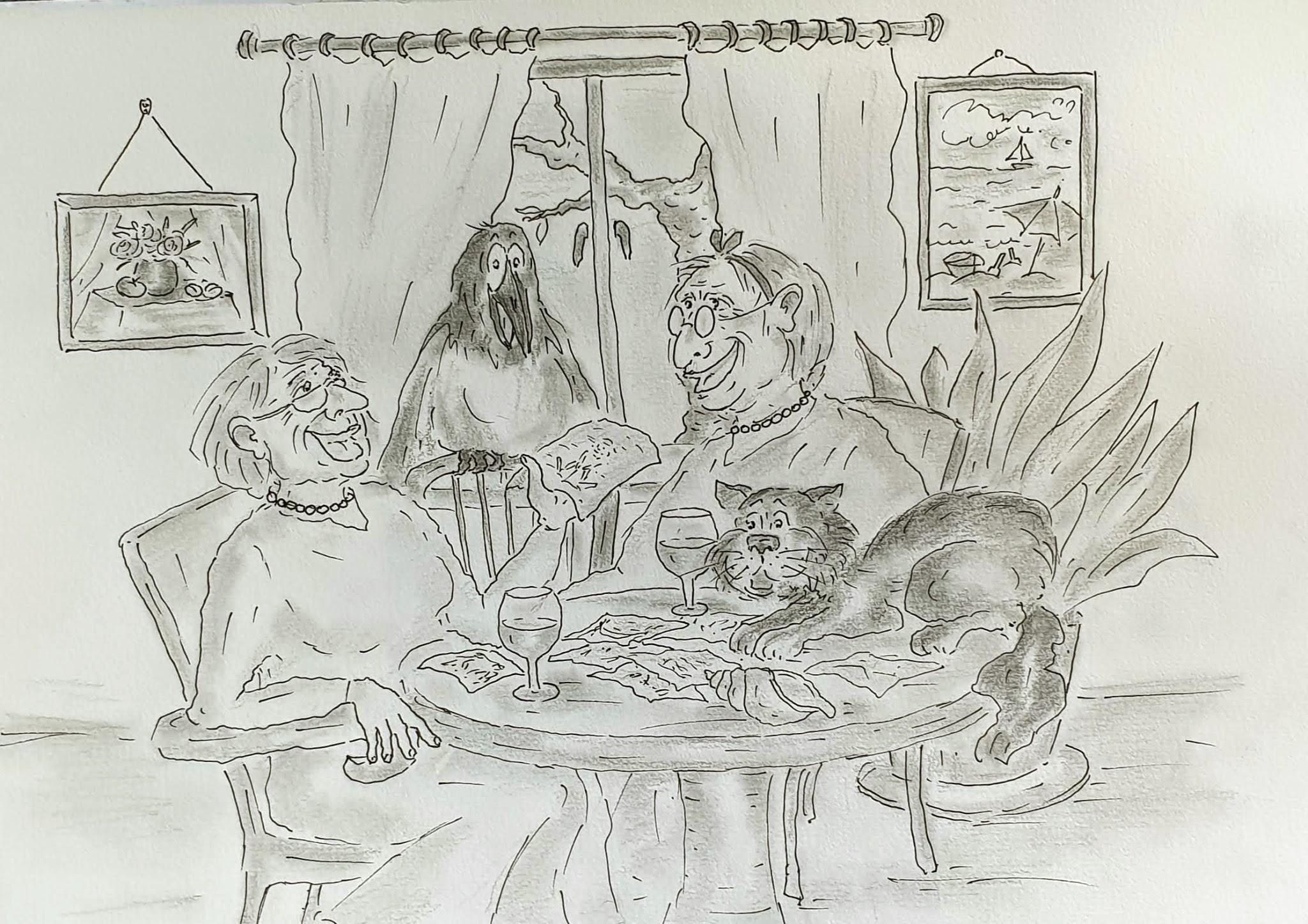 За чаем Баба Гуся и Тётя Маша разложили на столе фотографии и открытки, вспоминали свои приключения и громко смеялись.
