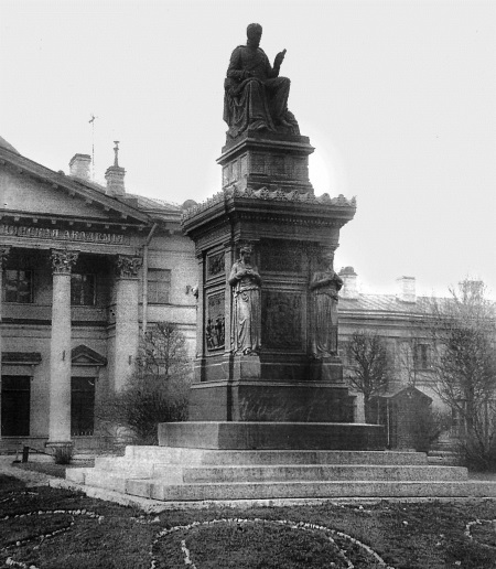 Памятник Виллие у здания Военно-медицинской академии. Санкт-Петербург. Установлен в 1859 г. Фото К.К. Буллы. 1914 г.