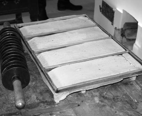 Остановимся подробнее на технологии этого старинного производства. Сначала яблоки варили вместе с кожицей и семечками, затем их толкли, смешивали с медом и наносили эту смесь тонким слоем на ткань, натянутую на деревянные рамки. Сушили в таком виде на открытом воздухе, затем слои пастилы (яблочной, ягодной) укладывали друг на друга и помещали в ольховые ящики, которые ставили в протопленную печь для досушки в условиях постепенно понижающегося тепла (без огня).