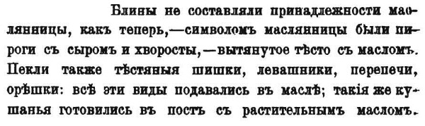 Кстати говоря, это неожиданное для сегодняшнего дня наблюдение делает не только она. Конечно, блины на Руси существовали давно. Другое дело, что именно как масличное угощение они использовались далеко не всегда. Скажем больше: нет никаких письменных указаний на это до XVI века. То есть была и масленица, были и блины. Но вот вместе они тогда как-то не сходились. Именно об этом можно, в частности, прочесть у знаменитого русского историка Николая Костомарова (1817–1885)231: