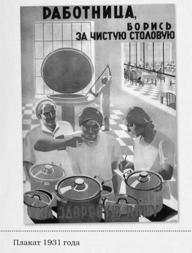 Кстати, обратите внимание. Эстетическая эксплуатация кулинарных образов при СССР была неоднородна по времени. В 1920–30-е годы – это русский авангард, рекламные стихи Маяковского, плакаты в ярком брутальном стиле: «Работница, борись за чистую столовую, за здоровую пищу!», «Долой кухонное рабство!» и другие темы были нацелены не на пропаганду продуктов или пищевых товаров, а на улучшение общего быта и привычек. Именно этот приоритет был главным в работе советских властей.
