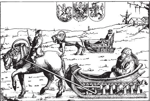 Герберштейн во время путешествия по России. С офорта Гиршфогеля, 1546 год