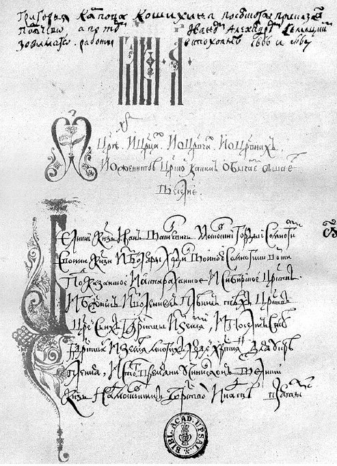 В 1564 году с рекомендательным письмом от английской королевы Елизаветы к царю Ивану Васильевичу прибыл итальянец Рафаэль Барберини. Его рукопись до сих пор хранится в Риме, в Барберинской библиотеке, под заглавием: «Relazione di Moscovia Scritta da Raffaello Barberino al conte di Nubarola, Anversa li 16 ottobre, 1565». Точный список ее находился в музее графа Румянцева. В XVI–XVII веках она издавалась несколько раз на разных языках. На русском языке появилась впервые в переводе В. И. Любича-Романовича[26].